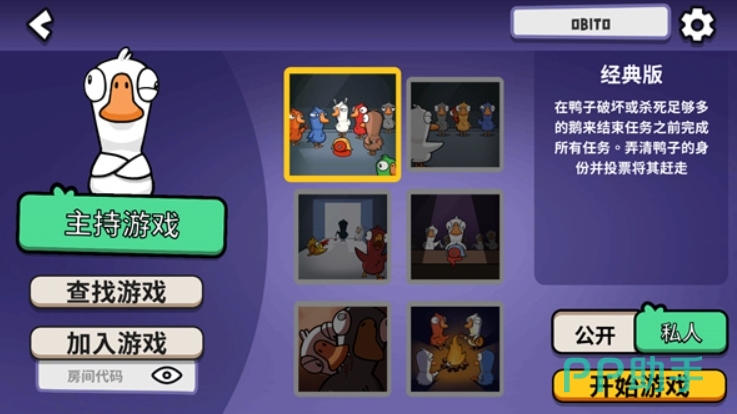 游戏将玩家分为鹅、鸭、中立三大阵营,鹅阵营类似传统狼人杀里的好人阵营,需通过完成任务或投票淘汰所有鸭子获胜,鸭阵营则扮演杀手角色,要靠暗杀、破坏等手段消灭所有鹅取胜,中立阵营每个角色胜利条件各异,像秃鹫需吃掉一定数量尸体,鸽子要感染所有人,开局会把玩家随机分配阵营,地图上有着更多的任务点,鹅阵营玩家需完成修理设备、清理垃圾等小任务,推动任务进度条,满格就可以获胜。