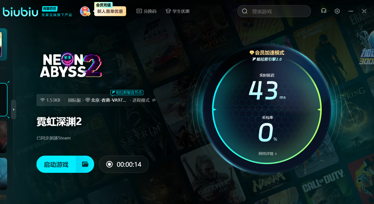 现在,只要输入【biubiu不掉线】就能换取3天免费时长。而新人完成注册登录操作后,系统会即刻赠送24小时会员提速权益。将这两项福利叠加使用,累计可获得96小时的服务时间。