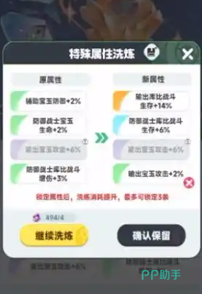 可以选择培养到特定的品质,这样就可以激活洗练功能,通过洗练可以随机刷新成为其他的属性,这样玩家就不需要再去更换,而是可以以全新的属性继续使用,建议大家在洗练的时候优先去挑选比较匹配的,比如输出类型的精灵选择增伤辅助类型的选择生命加成,这样才能让宝玉发挥相应的作用。