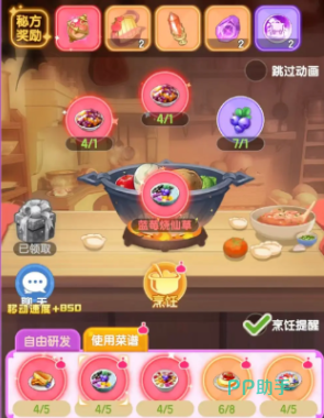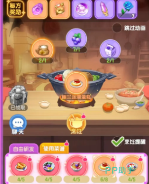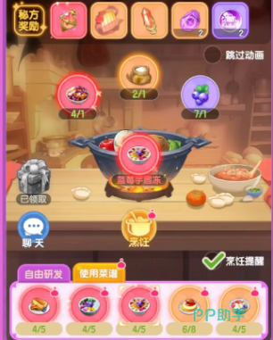 蓝莓烧仙草:可以根据界面的烹饪去准备所需要的材料,合理的搭配蔬菜等一系列的食材,在烹饪成功之后就能丰富食谱库。后续一段时间就可以提升角色的属性,也能有效作用于任务中。