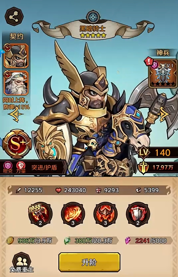 黑暗骑士拥有着较为出色的属性数值,放在前排能扛上很久的伤害,大招除了有着较高的伤害倍率外,还可对目标施加集火,方便玩家通过爆发来秒掉目标。