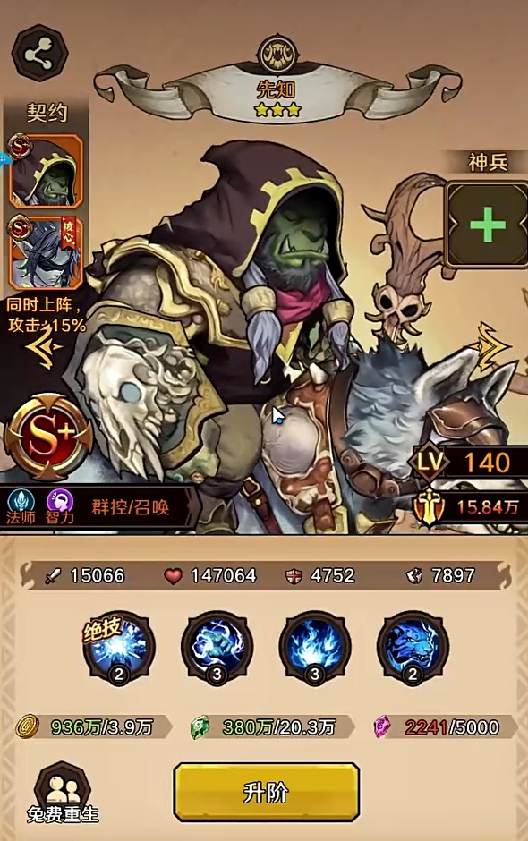 可召唤幽灵狼来攻击他人,且幽灵狼能继承角色本体的属性,因而只要先知的练度越高,幽灵狼机会越厉害,在对付没办法克制召唤物的阵容时效果很出众。