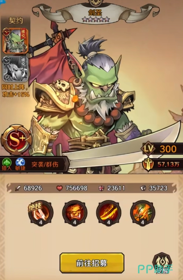 兽人队是以剑圣、兽王和灵魂行者为核心所组建出来的阵容,该阵容的特色是不怕被控制,且所有角色都能打出很高额的伤害,持续作战的能力也非常强,所以在竞技场、boss战等高压环境下很热门。其它两个空位则可上恐惧猎手或是能召出召唤物的英雄来配合兽王。