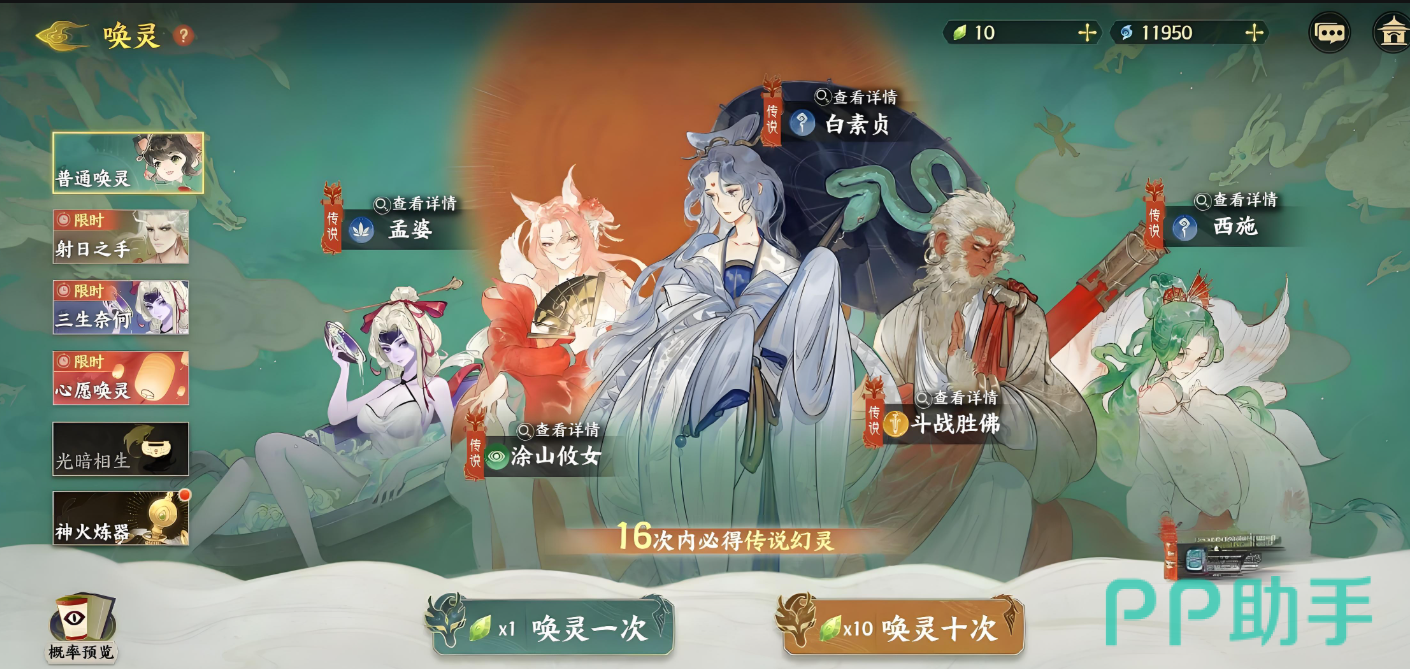每天完成主线通关还能免费获得200次抽卡的机会,其中有155抽普通卡池抽卡机会以及35抽神器抽卡机会,这里建议玩家可以先去限定卡池抽后羿,只要抽够50抽就肯定能得一个传说级幻灵,抽100抽触发保底机制肯定能得后羿。