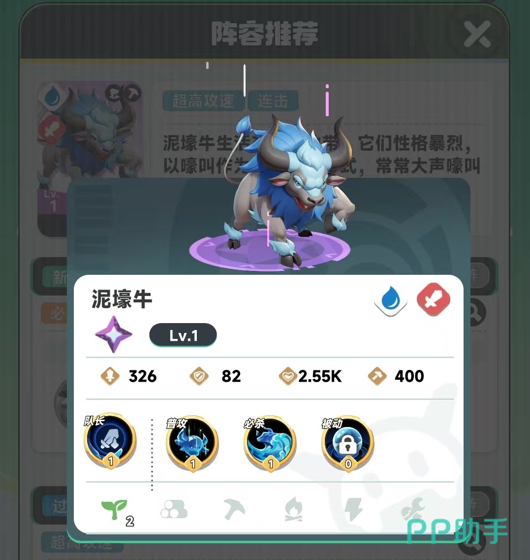 水系宠物的特点是具有稳定的续航与群体减速能力,代表宠物是泥壕牛,前期非常容易就能升星,队长技能还可以提供增伤和回血,很适合用来承担伤害,必杀技带来群体护盾效果出色。后期可以替换为玄武等宠物,搭配上鲁米尔等可以组成纯水队,整体生存能力很强,适合新手养成,降低培养压力。电系宠物的特点是群体攻击频率高,爆发输出比较强,代表宠物是紫月蝶,必杀技拥有高频范围伤害,随着星级提升,暴击率还能进一步增加。电系队伍中期可以将紫月蝶替换为更强悍的天麟,雷电蛙替换为天照雀等,搭配上其他可以触发增伤的电系伙伴,整体输出能力非常强大。