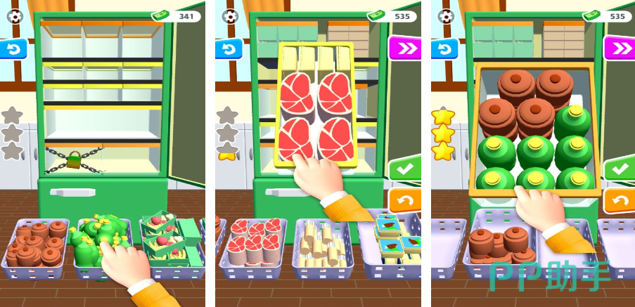 玩家化身超市理货员,将各种形状尺寸的商品,巧妙安置在冰箱有限的空间里。游戏中的每件物品,都有精确的体积参数,从饮料罐头到冷冻食品,必须通过合理的排列组合,才能最大化利用储物空间。你需要像玩俄罗斯方块一样,旋转调整物品角度,寻找最经济的摆放方案。当遇到棘手难题时,系统贴心设置了辅助功能,可以为你展示最优的收纳示范。