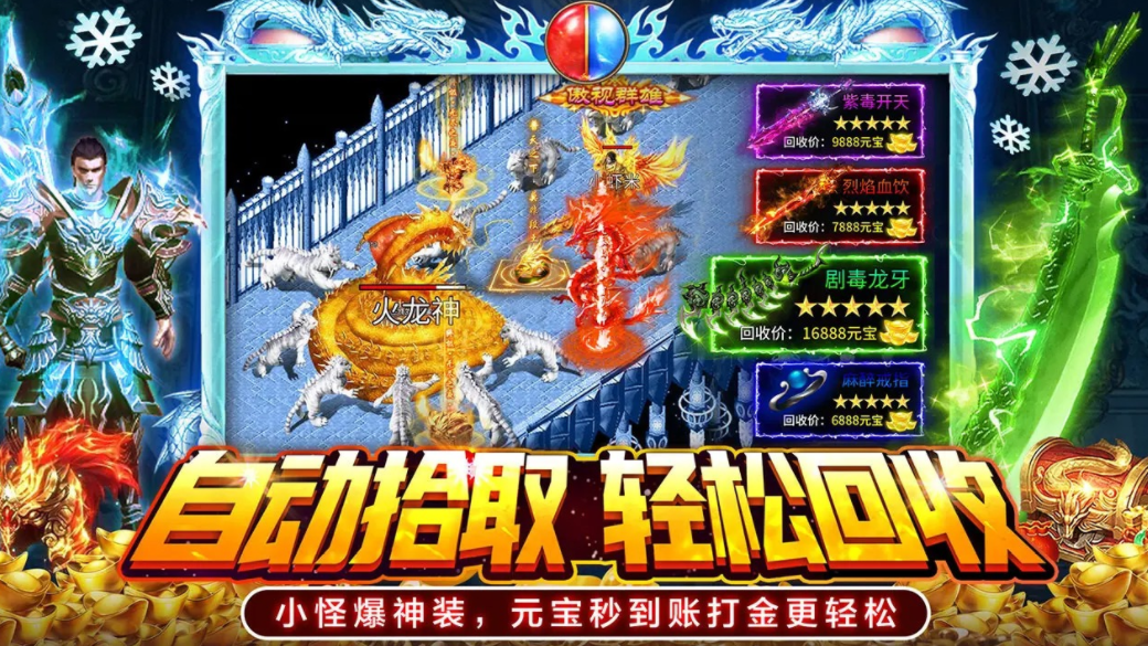 作为一个高爆率的传奇手游,每一次对战都能出现炸裂的光柱,在光柱下都会有大量的装备,可以选择自己穿戴,也可以直接交易,交易完成之后就能获得大量的资源,散人也可以通过这种设定直接逆袭,攻击大boss更是有机会获得稀有的装备,挂机设定,可以让玩家即便在离线状态下,也可以不断对战这些怪物,可以源源不断的获得收益。