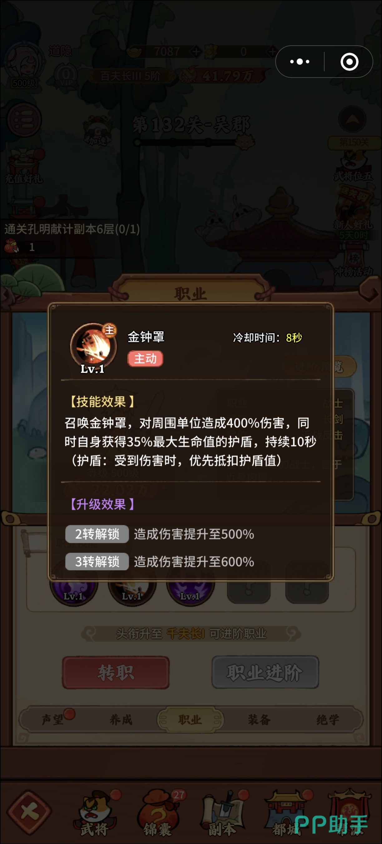 在游戏前期PVP和PVE不用进行阵容划分,建议职业进阶为战士,战士的主动技能金钟罩35%最大生命值护罩的效果,可以让玩家在PVE和PVP中越几万战力赢取胜利。