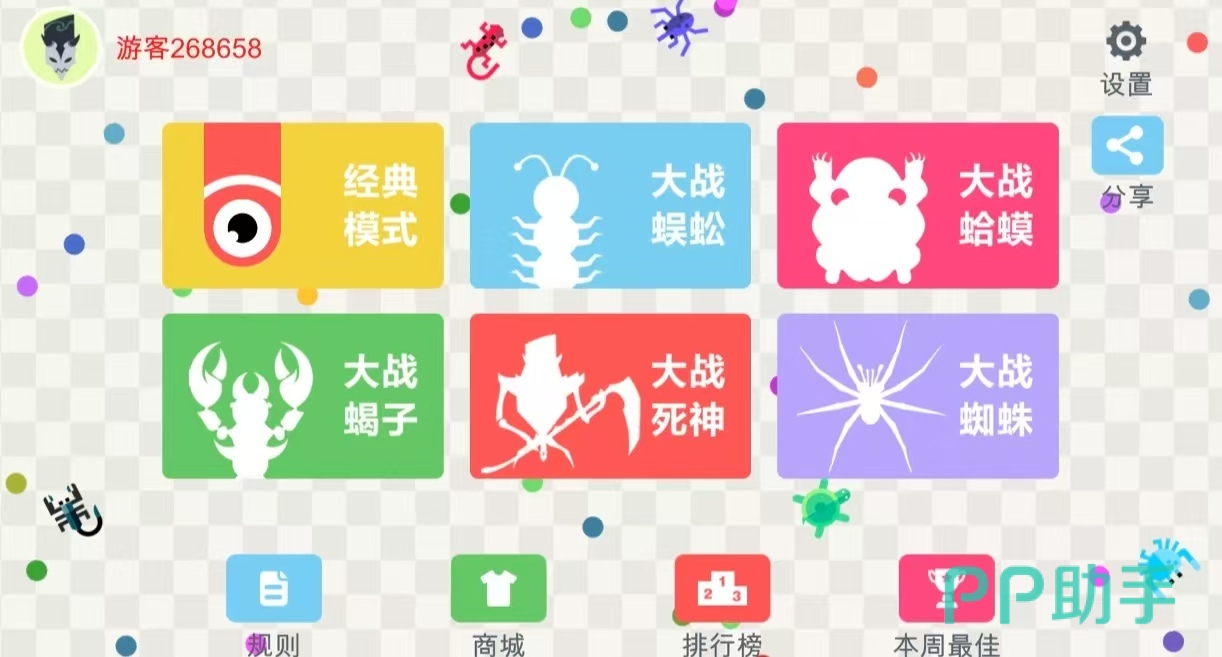 《五毒大作战》用了一个非常简约的游戏画风,拥有着很多独人物造型,玩家需要控制角色不断移动,可以在地图上不断的坚持使用。在过程中角色会变慢慢的长大,每一个角色都自带有不同的天赋,可以进行多人一起团战的模式。也可以一起对敌人进行包围,通过一些技可以加速,还拥有着海量的皮肤可以自由搭配,提供的游戏模式和种类也很丰富。