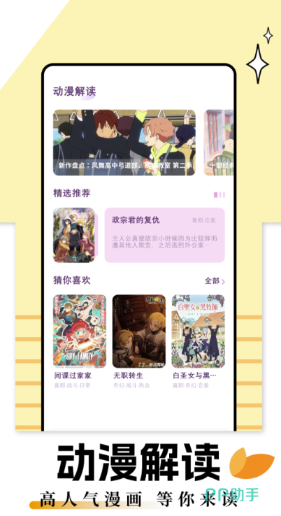 综合性超强的动漫 APP,集动漫推荐、观看、创作、互动等多种功能于一体。庞大的动漫资源库,类型丰富多样,涵盖热血、恋爱、悬疑、科幻等数十种题材,细致的分类让伙伴们能迅速锁定心仪的作品。智能推荐系统就像一位贴心的动漫顾问,根据大家的观看历史和偏好,精准推送符合你口味的作品。