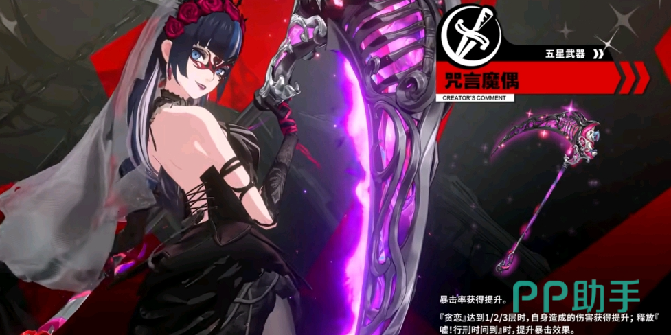 她的“HIGHLIGHT”能对1名敌人造成诅咒伤后,让怨念能触发暴击一定回合,并立刻结算该目标身上的所有持续伤害效果,她的专武能在怨念层数到1、2、3层时提升自己的伤害,并立刻释放一次“行刑时间”提升暴击效果。