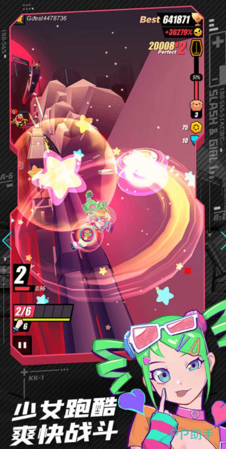 这款游戏融合跑酷与战斗,玩家操控少女角色斩杀沿途小丑敌人。操作包含跳跃、下劈等连招,刀光自带节奏判定——紫光闪时劈炸弹完美连击,节奏斩切爆机甲群,下滑双指搓屏触发涡轮冲锋,BPM也会跟着加快节奏,代入感极强,通关奖励是给病娇少女戴兔耳,而且还能角色可自定义服装和武器。
