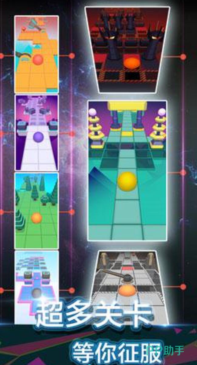 玩家控制一颗小球在炫彩的3D赛道上滚动,躲避陷阱和障碍。赛道会动才是真绝色——魔法阵齿轮突然咬合,钢琴键踩空就失败,每关配乐都是大师定制:电音王子Tobu操刀未来关,赛道设计充满未来感,难度循序渐进。关卡主题多样,从森林到星际迷宫,视觉冲击力与玩法都非常不错。