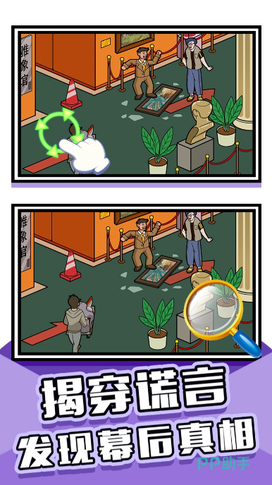解密游戏,常常能够锻炼玩家们的思维模式,而密室大侦探,这款国产解谜游戏也不例外,他已关卡模式为主进行故事内容的展开,除了基本的证据寻找玩法外,他还加入了找茬对比模式,提升玩家们的观察能力,和逻辑思维能力,在每一次证据寻找的过程当中,触发更多趣味时间,与NPC沟通的过程当中,揭穿他们的谎言,发现幕后真相,大量道具,让你的破案过程不再挠头。