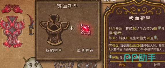 在传说级别的装备中吸血匕首,是由血色护符,还有匕首组合而成。一旦在击败对手之后就可以获得增益效果,而且吸血效果是比较显著的。颠茄剧毒弓这就是游侠的利器,是由瘟疫烧瓶,还有弓箭合成。