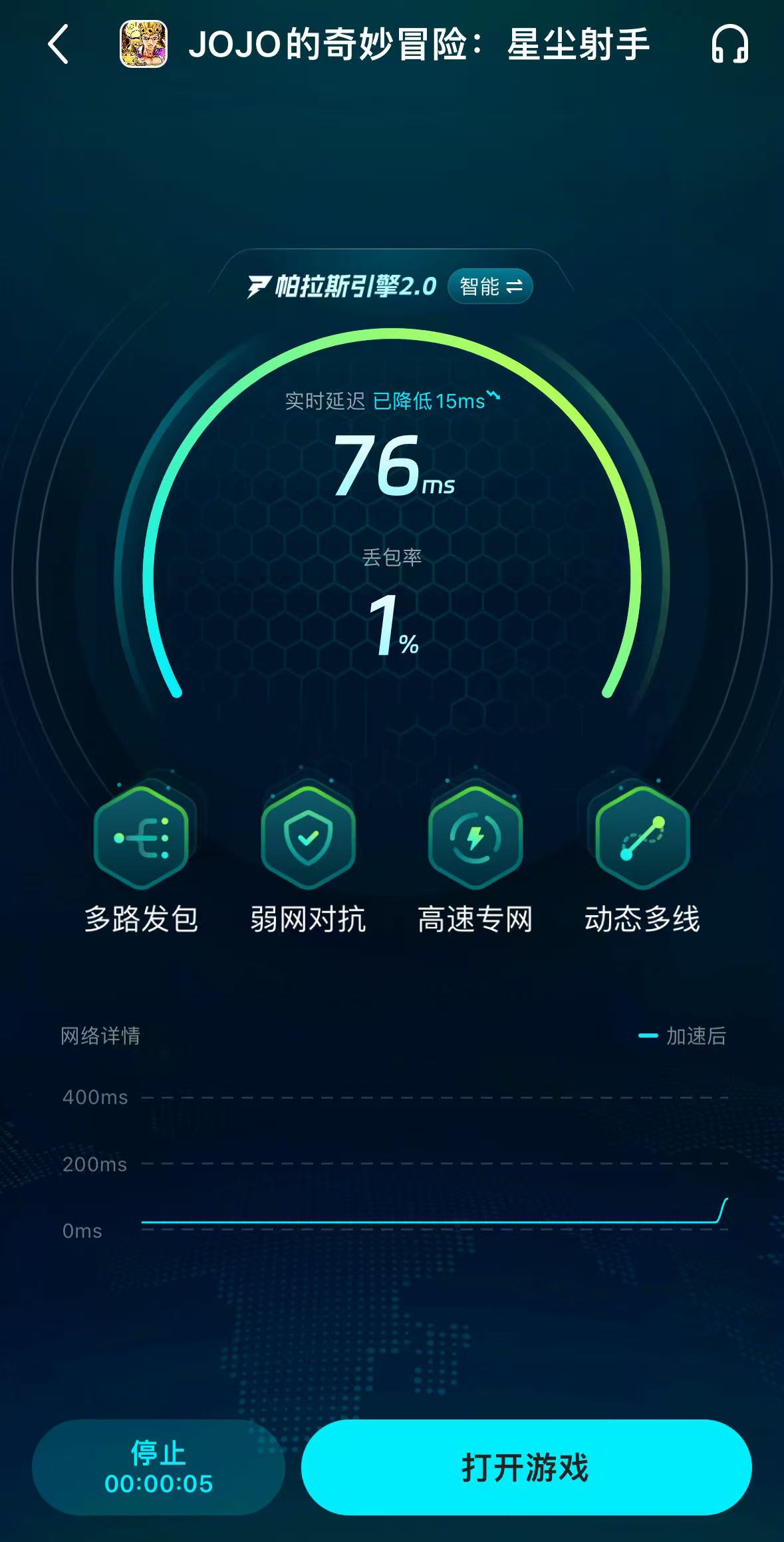 对于网络引发的这些问题,很多玩家开始寻求专业加速工具的帮助。在众多工具中,biubiu加速器的表现可圈可点,成为不少玩家的首选。它通过智能加速技术帮助玩家与游戏服务器之间建立更优的连接路径,有效避免了数据传输过程中的延迟、丢包等问题。在玩《JOJO的奇妙冒险》这类对操作反应速度要求较高的游戏时,biubiu可以在关键时刻稳定帧率,减少因网络波动造成的卡顿现象,让每一次技能释放和攻击判定都更加精准、流畅。
