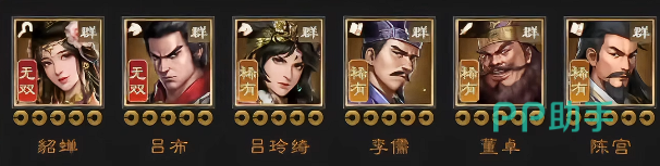看完后就可以来看第三套,也是今天要带大家看的最后一套好用的队伍了,这是由吕布、董卓、陈宫、貂蝉、高顺组成的黑科技阵容,这阵容中的主c为吕布,其它角色全部都是挂件,这几位挂件角色主要的用途就是为吕布叠属性,吕布是有叠属性吸属性能力的,在这几位角色的辅助下,吕布自身的属性会被叠加的相当的高,这么一来结合上自己高伤害的aoe技能后,每次攻击都能打出毁灭性的效果。