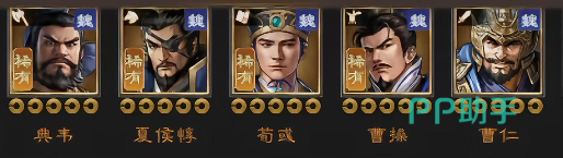 看完后就可以轮到第二套亮相了,这支队伍则是标准的魏国势力队,他们是由曹操、夏侯惇 、张辽、许褚 、典韦 、荀彧、郭嘉组成的,这套阵容中夏侯惇、张辽为输出类型的角色,他们两个拥有多个范围类型的aoe技能,可以做到快速清场的效果,许褚 、典韦是该阵容中的前排,这两位角色是战士定位的前排,自身是有不错的对单伤害的同时肉度也可以,在该阵容中是可以帮助主c去补伤害的,两个人集火的情况下dps非常的高。