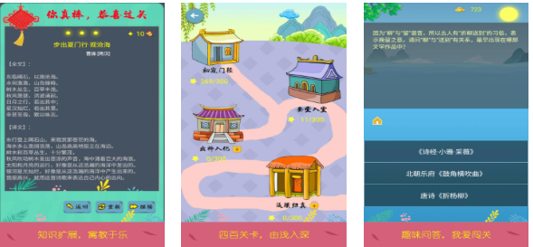 诗词酷玩是款帮助孩子们学习超多诗词歌赋知识的益智游戏,启智互动的玩法跟诗词元素进行结合,寓教于乐的性质和耐玩的游戏机制交相呼应,与诗词互动进行闯关的游戏理念更具可玩性,游戏画风卡通还有着极强交互性深受孩子喜欢,众多诗词知识融合其中锻炼了孩子出口成章的能力,你也在这款诗词解谜手游中尽情互动吧。
