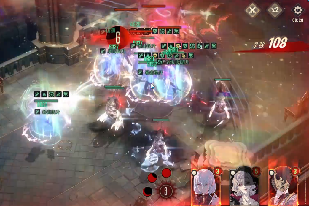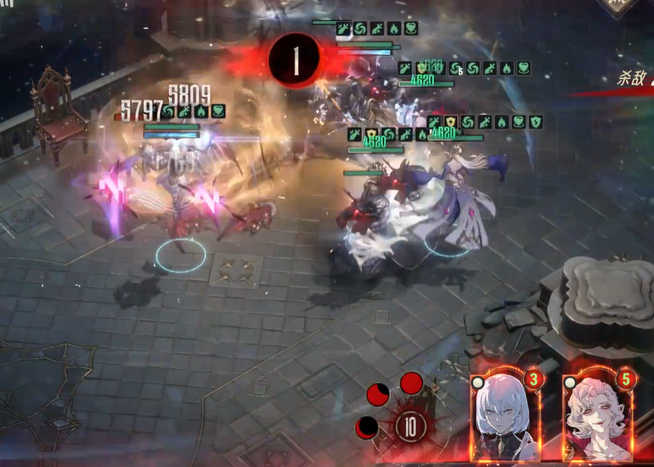 接着就是中途战斗了,对面基本上都是吸血鬼小怪以及大怪,可以优先秒掉大怪,因为大怪的输出火力比较猛,而小怪多数都是远程模式,伤害不算高可以后面满满磨掉,优先让所有人集火敌方最大的怪物,击杀以后我方应该还存在3个人,之后再慢慢磨掉小怪就可以获得游戏胜利了!