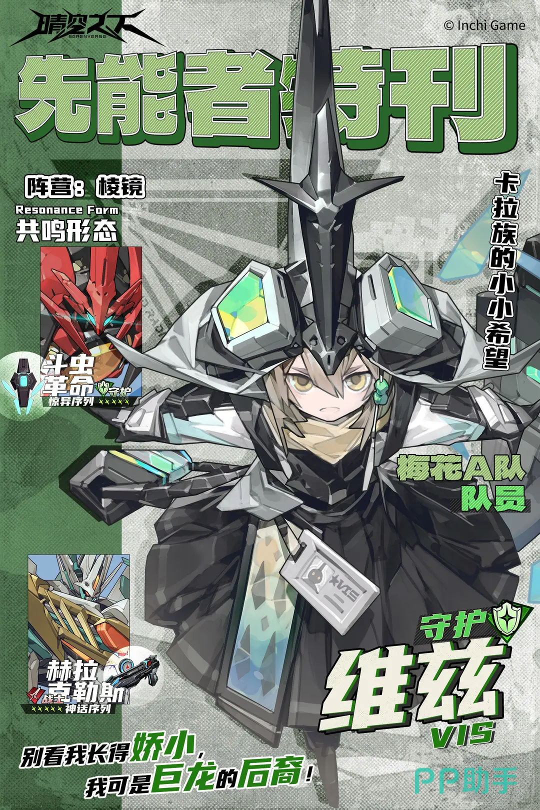 他是卡拉族出身的半伊甸人,作为梅花A小队的实习队员,是队友坚实的保护盾,身材娇小却天生神力。守护的定位,使用强韧的身躯守护同伴。1技能“广域守护”,对周围一定范围内的所有友方部队展开“护卫”,能持续若干行动次数。2技能对目标造成一定程度伤害后,降低友方部队受到的地图技能伤害。大招“活力迸发”,在自己心动结束时,恢复自身部队一定生命值,有效提高队伍整体的生存效率。