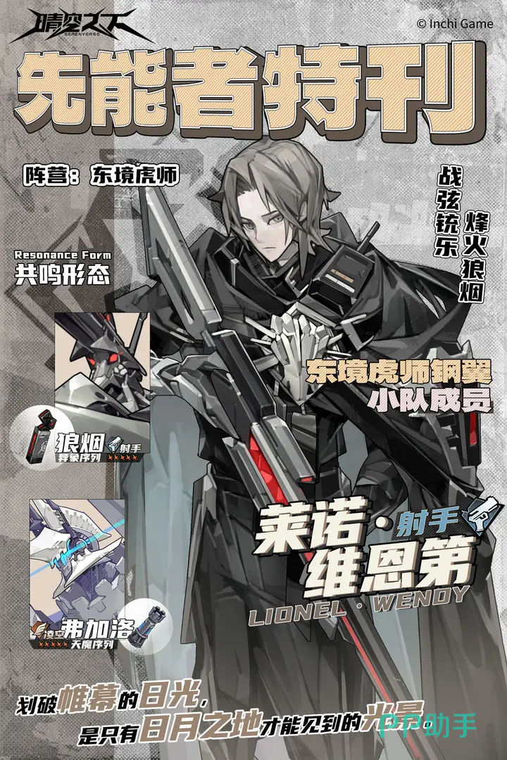形象帅气,看起来就是个贵公子的形象,实际他的设定也确实是进入军队历练的贵族工资,性格比较孤僻,与军营生活形成鲜明对比,但是经过长时间的融入,最终也变为了强大的战力。射手的定位,能对敌方单位展开精准且致命的射击,单人就能影响整体战局。1技能可远程狙击目标,敌方承受大量伤害,若敌方处于“属性弱化”状态,伤害会增加。2技能可选择战场中的一名队友,对其添加能叠加的“攻击强化”效果。3技能给友军提供战术掩护,行动结束时,能让周围生命值最低的友方受到的伤害降低,保护队友,提升友方存活时间。