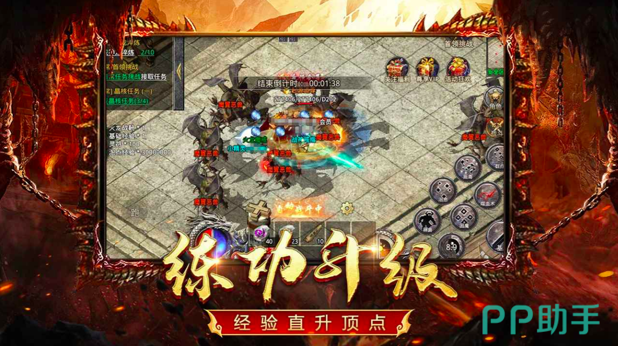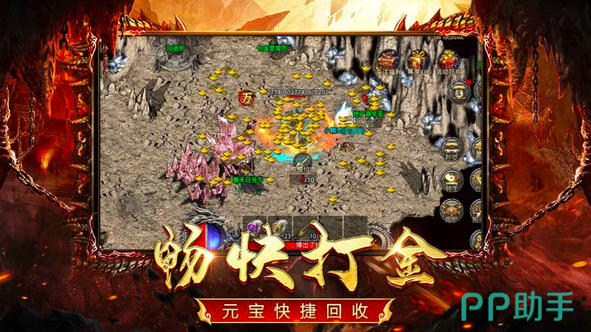 在技能密集的刷取上,野外小怪也可以爆出很多高品质秘籍,学习之后实力快速增长,定期的惊喜礼包,刷出稀释神器,再不是梦想,而且通过每天的竞技PK,还有很多超值奖励可以在线获得,跨服挑战、决战玛法这些经典元素,在游戏当中玩家可以尽情体验,有趣的社交系统,结识更多好友,一起参加团队挑战赛,每天定时还可以参与财神来袭活动,在荒漠土城中快速刷出财神妖术,完成击杀后,就可以爆出大量的资源和金币。