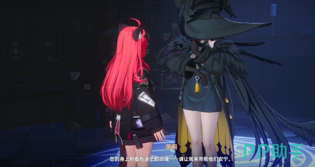当大家抵达之后,就可以看见一件红色房子,这时可以靠近房屋。靠近之后,轻轻地叩一下门,这时就会进入魔女出场的画面当中。当一顶乌鸦一般的帽子一闪而过之后,就会出现一个魔女般的人物。