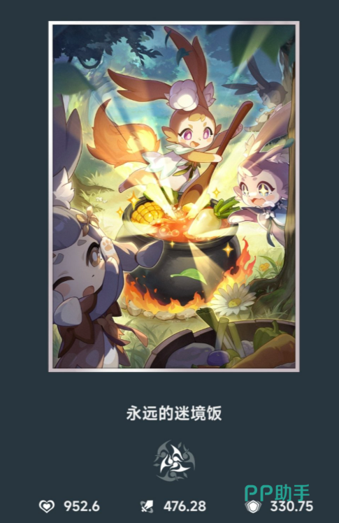 “永远的迷境饭”是4星的同谐光锥,生命是952.6,攻击力是476.28,防御是330.75,技能“真香”能让装备者的攻击力得到提升,装备者在使用战技后,攻击力也会随着提升,该提升效果最多可以叠加3层。