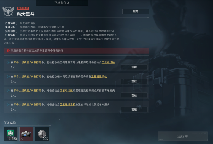 第三个改动的任务是满天星斗,这个任务简单来说反而改简单了。玩家们只需要进入行政楼周边去拿东西,然后拿完东西放东西,这个做起来也很快,需要注意的就是玩家们要进行避战。