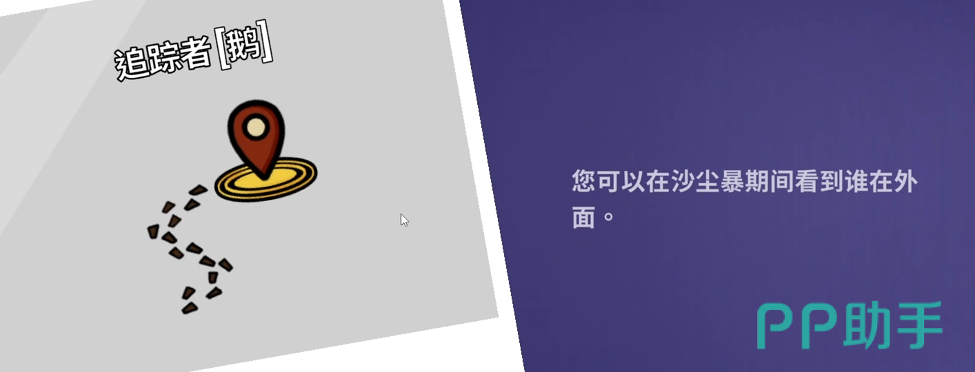 追踪者这个身份是属于鹅方的特殊角色,这个角色是属于地图的限定角色。游戏里面在金字塔地图之中才会出现这个身份,这个角色的能力是在沙尘暴期间可以看到谁在外面。这个能力在这张地图是非常有用的,它可以很好的追踪在外面出现的鸭子,让鹅方可以获取到更多的线索。