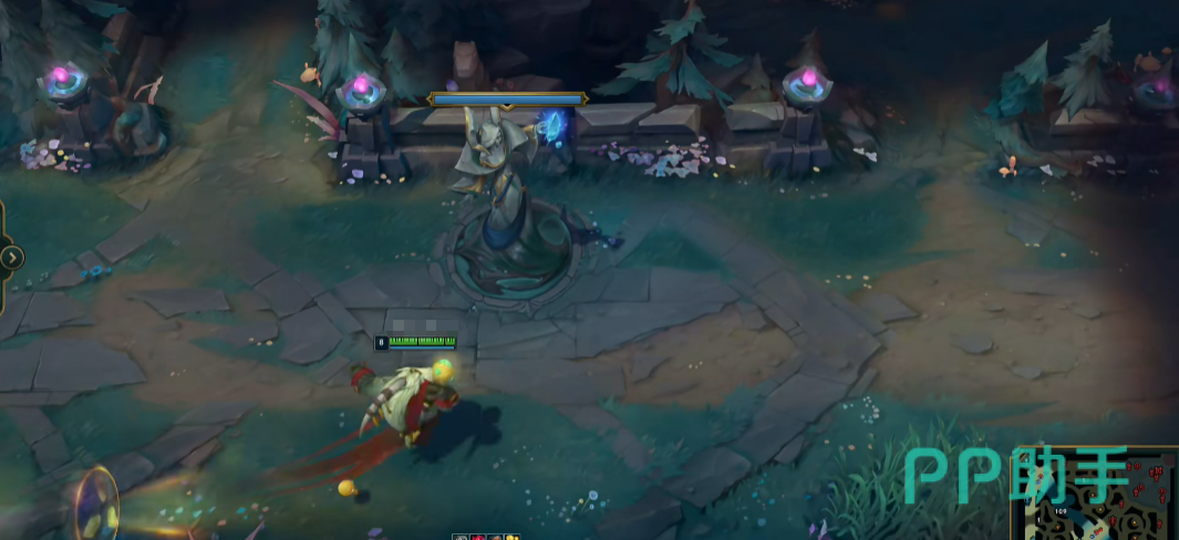 被动效果“旅者的召唤”,巴德在场时会有调和之音出现,这些调和之音会给他带来经验值,12%的法力值外加24%的移速加成,在获得一个层数之后,每一个额外的调和之音都能给他再额外提供14%的移速,最多5层;小型灵体会协同他攻击,造成额外40的魔法伤害,木灵会不断获取能量,提升后续伤害。