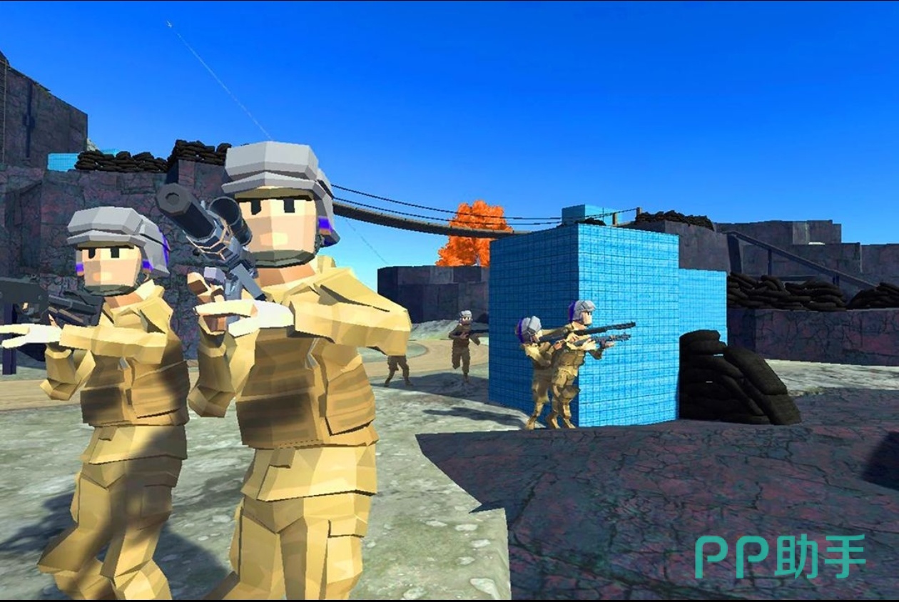 游戏中运用3d视角进行战地模拟,从战地地图,再到战地人物上,这都很有战地模拟体验。此外,红蓝双方的对战依靠射击精准度,还有武器的强大程度,其中就有直升战斗机,汽车坦克等等。有趣的是,里面的战地人物npc有着人工智能属性,让玩家的战斗体验可以得到真实模拟。