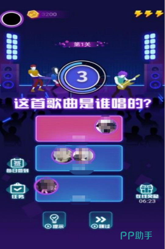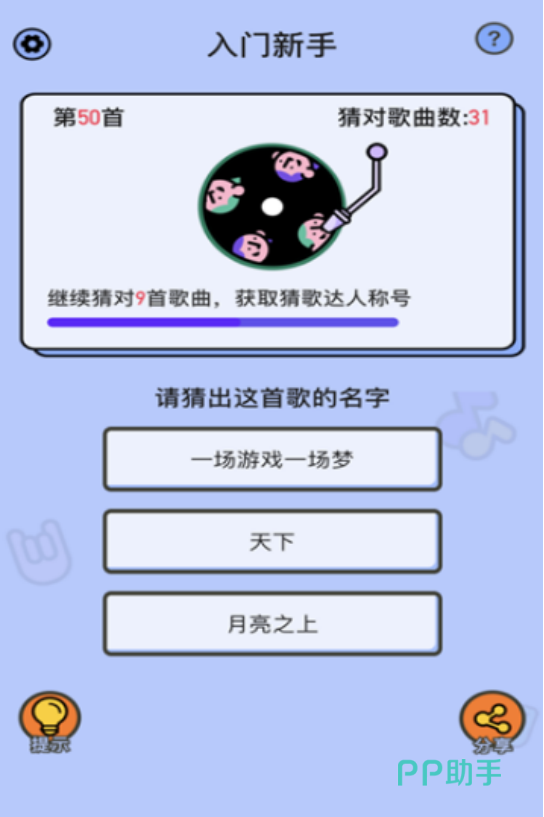 简单易上手的操作方式,其中还涵盖了海量的热门音乐,每个不同风格的音乐资源应有尽有。玩家猜中的歌名越多,获得的分数就会越高,也会逐渐提升个人等级,但是所有的关卡难度都是循序渐进地,闯的关卡内容越多,挑战就会越高,不过每个关卡中都会呈现出大量的道具,比如提示道具以及刷新道具等。