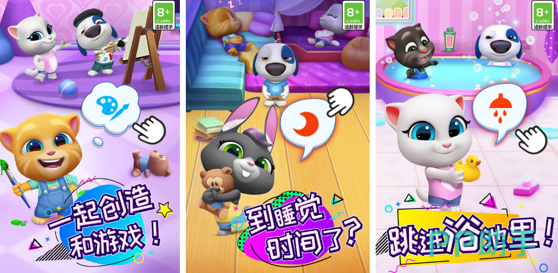 《汤姆猫总动员》中汇集了很多经典角色,大家可以和这些角色们一起互动,比如喂食、洗澡和睡觉等。而随着你与角色亲密度的提升,还可以解锁角色的其他技能,比如跳舞和唱歌。游戏支持自由DIY模式,还可以为角色们更换服装,打造独一无二的形象。此外,手游内还内置了很多小游戏,比如汤姆猫快跑和安琪拉时装秀等,很适合小朋友们去挑战。