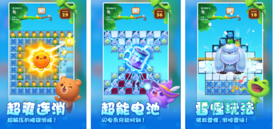 这里拥有相当独特的核心玩法,通过连续消除的方式,来消除相同图案,这样才能够轻松通关,作为相当经典的三相游戏将三个或者数量更多,相同的图案拟相连就能够触发相应的特效,最终获得分数满足要求通过关卡。游戏不定期更新,当前推送出超过9000多关,独特的视觉与音效体验相当别致,拥有着无比悦耳又动听的音响,为玩家营造出欢快又轻松的氛围。