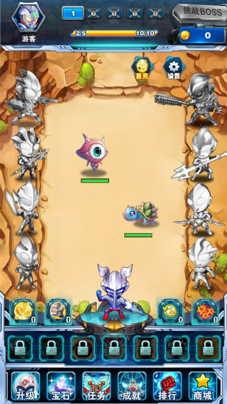 这款游戏是经官方正版授权精心制作的。画面上,它运用了别具一格的二次元美术风格,给人耳目一新的感觉。玩法层面,它跳出了传统动作手游的框架,巧妙融入了塔防、策略等新颖元素。游戏内角色众多,玩家可随心挑选。故事背景设定在人类世界,当怪兽来袭,作为地球守护者的你,需携手众多奥特英雄,共同抵御怪物,守护世界和平。