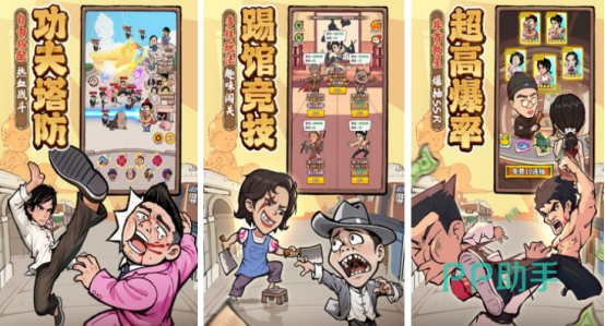 将功夫题材以及策略塔防的元素结合在一起,玩家在游戏中将会面对各种各样的敌人类型,在面对不同的敌人时,都需要正确建筑防御塔,还要提升角色的技能,其中涵盖的角色有很多,比如有阿星或者是包租婆等等,玩家要释放出精准的技能,提升角色的等级。