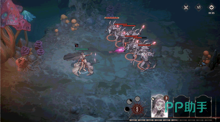 特性“钻石牌阵”,她在进行占卜时,会从这些牌型中随机选择一种占卜,国王牌,会给敌人施加1层“痛楚”,每2秒让敌人受到40%的法术伤害,效果持续6秒,持续伤害也就是痛楚效果,敌方每2秒受到1次法伤,最多能添加5个;