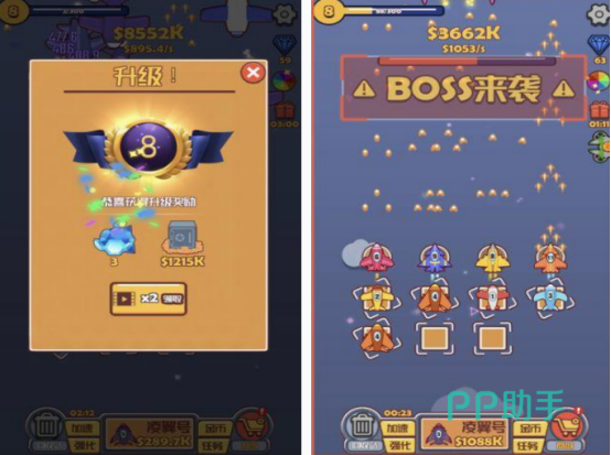 玩法新颖,融入了放置射击类型的,通过不断合成专属战机的方式,享受爽快的战斗。虽然整体的方式设计比较简单,不过却能在每次享受全屏子弹所带来的紧张刺激感。进入了这款竖屏的画面中以后,每个玩家都需要及时的应对boss,通过及时的使用战机,进行射击的方式,能获得超多奖励。