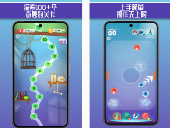 将相同弹珠,利用点击合成的方式,进行体验的对对碰手游。相对于单纯点击两个一样的弹珠,就可以完成消除的手游,也是一种玩法比较独特,通过瞄准发射弹珠,来挑战的考验玩家的技术水平,以及运气。涵盖100多个奇妙的关卡设计,每次都会给大家带来不一样的体验,属于上手特别简单,也有机会使用道具来帮助玩家获得更高的分数。