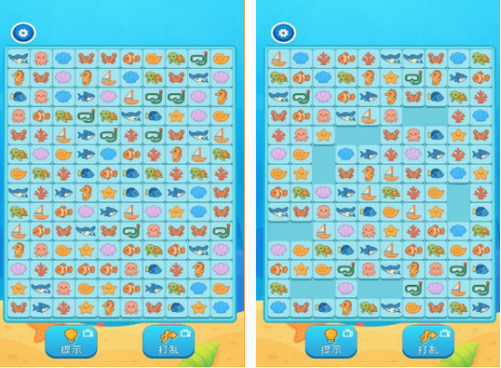 进入这款以深海环境为主的,对对碰游戏以后,通过指尖滑动,就能对里面不同颜色的鱼儿展开欢乐的碰撞,由于在每个关卡中,都有海底的很多生物,无论是大家熟悉的鱼儿,或者是大鲨鱼等,都需要利用配对,正确相连的方式,来增加所获得的分数,也需要玩家仔细的观察,还要掌握每次两个同样动物相连时的技巧。