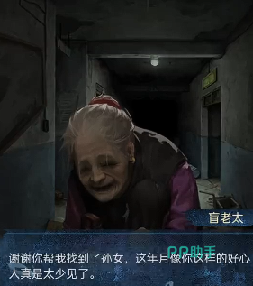 完成这一步后需要将其带走回到楼梯口位置,然后往下走去找老奶奶,在回来后会发现老奶奶消失了,只能在原先的位置找到她的黑白照片,随后需要查看照片,然后利用前面的布娃娃去互动,互动中照片会发生变化,会有信息弹出。之后需要切进入到前面没探索的地方去收集探索道具,然后按照提示一个个的去完成解谜。