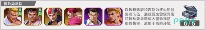 而对于追求极致策略的玩家来说,异常状态队也是不错的,其中吉斯、坂崎与雷电夏尔美组成的这支奇兵,擅长利用异常状态瓦解敌人的防线,吉斯开场就可以直接利用印记叠加来进行输出,印记效果的每一层都能使敌人减防8%,有叠几层之后坂崎可以立刻接上下一个动作,以天地霸煌拳触发麻痹效果,让敌人陷入2秒的无法行动状态。