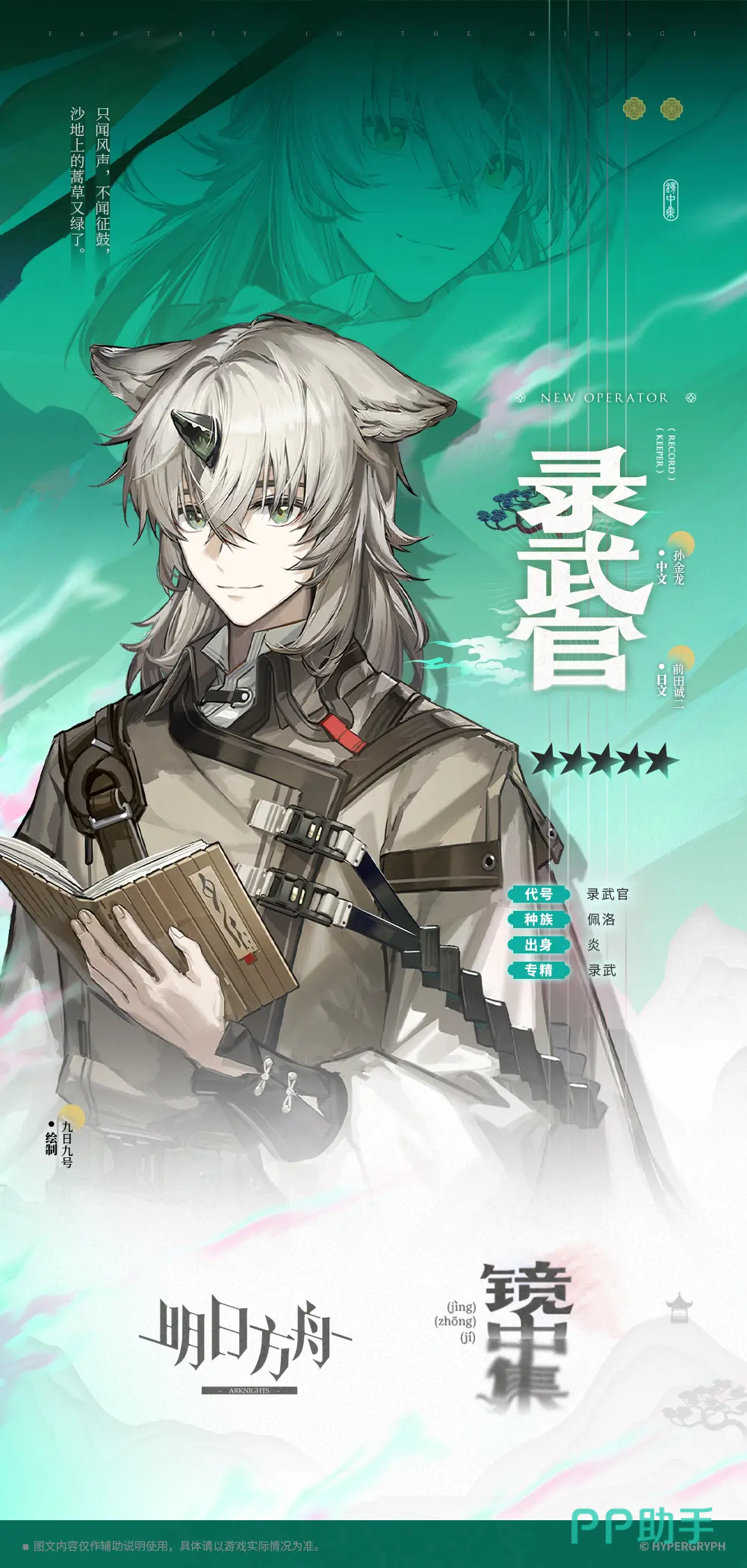 明日方舟录武官怎么样?录武官是游戏里即将上线的全新角色,白毛兽耳的形象,在额头处还有个类似的小角,为他帅气的面庞增加了一定的“萌”点,作为全新的五星角色,大家对他自然也是非常关注的,接下来就重点给大家介绍下该角色,让玩家伙伴们提前深入了解下,方便后续上手。