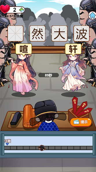 玩家化身寒门乞儿,揣着半卷残书,从街头巷尾的猜谜摊起步,靠着一肚子墨水闯科举、斗才情。猜成语、接龙、填词三重混搭,每过十关升一级,从布衣到状元郎,娶娇妻、住豪宅,某关答对画龙点睛,能解锁古代画师教玩家运笔,接龙时琵琶声急,升官时锣鼓喧天,连NPC的吆喝都带着唐宋市井气。这游戏像碗甜咸口的八宝茶,玩着解渴,喝完回味。