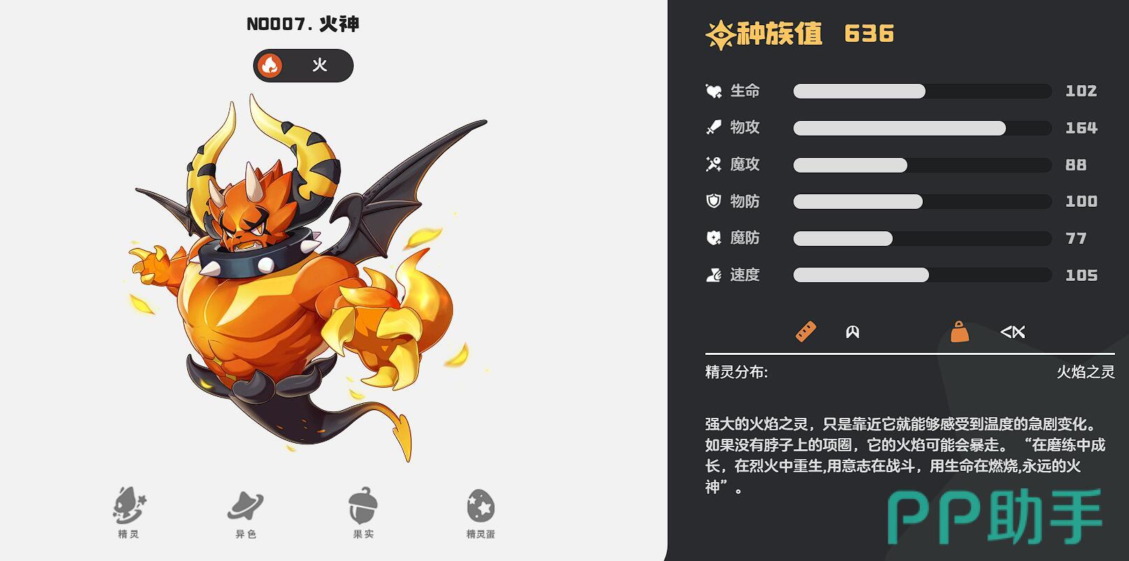 火神是火系精灵中的顶级输出手,种族值高达626,魔攻属性尤为突出。其核心技能“炽焰审判”能对草、冰、虫系精灵造成额外30%伤害,搭配特性“火焰增幅”(提升火系技能20%威力),在PVP中可快速清场。推荐搭配迅捷精灵或续航型队友(如恶魔狼、光明龙)提升容错率。