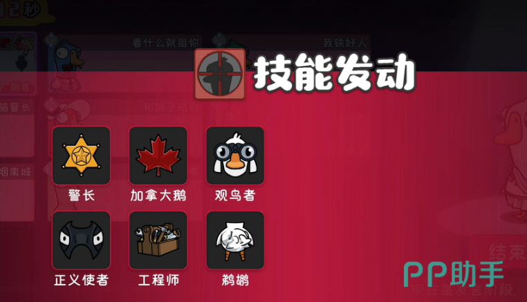 如果玩家们选择的角色是警长鹅,那么在本场的游戏中你可以杀死任何玩家,并且是没有次数限制的,但需要注意的是你只能杀死鸭子阵营和中立阵营的玩家一。但你错手杀死了自己阵营的玩家,那么本轮游戏将会无法继续进行下去,因此小伙伴们在动手刀人之前一定要有百分百的把握,不然一个不小心就会直接出局。加拿大鹅死后将会立即触发警告,这是一个被动技能,因此选择该角色的玩家,最好是提前几个回合向其他玩家透露自己的身份。
