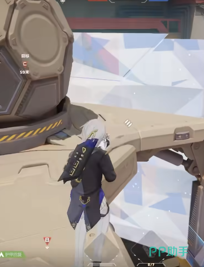 另外这个角色还有一个名叫黎明洞悉的技能,这个技能比较独特的设定就是可以在对战的过程中,让角色一直在开镜状态,在这个状态下,玩家可以每过一段时间就自动扫描前方的区域,如果出现敌人就可以直接透视出来,并且透视距离非常远,40m之内的敌人,都可以查看到具体的位置,并且在开镜之后,玩家能够探查到的不只是前方区域,是以自身范围为中心点,向周围发射10m到15m的一个长方形区域,可以更好的感知整个战场。