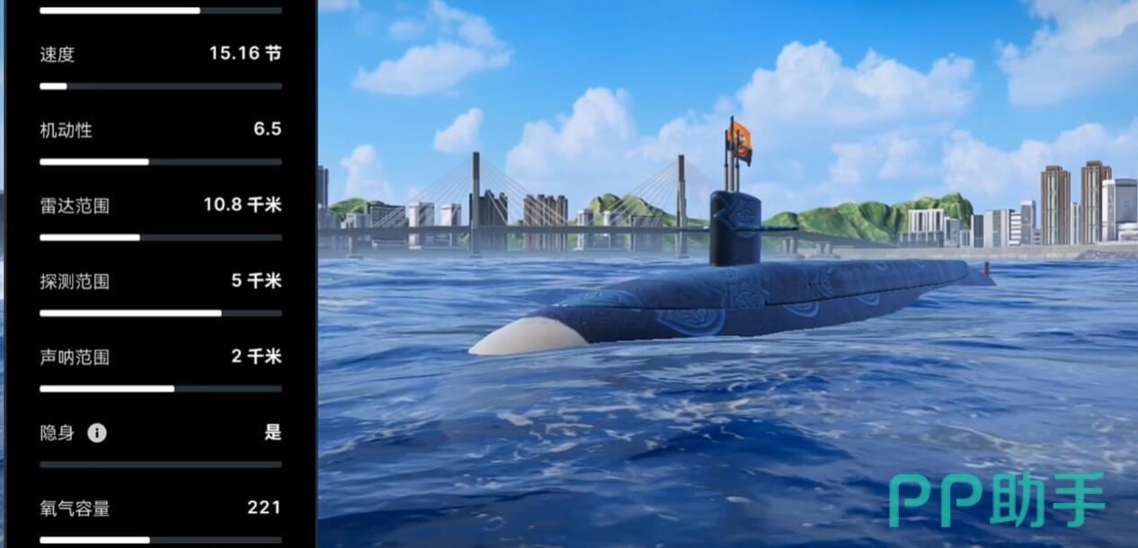 台风潜艇走的是血厚测可路线,静音效果不错,但氧气含量稍差,潜入深海后几乎无声无息。它搭配高伤害鱼雷,能在敌舰毫无防备时发动致命突袭,适合喜欢偷袭战术的玩家。该潜艇的缺点是火力密度较低,若未能一击必杀,容易被反潜单位追击。使用时需精准预判敌舰航线,确保鱼雷命中率,否则会很被动。
